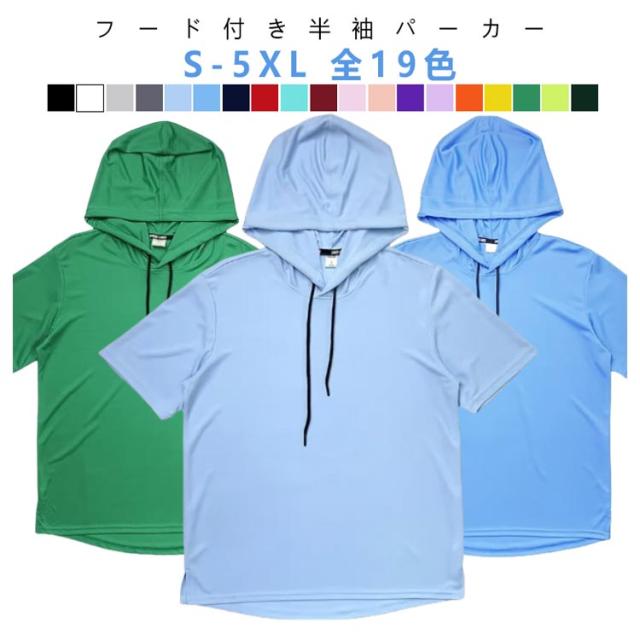 パーカー メンズ 半袖 フード付きtシャツ 半袖パーカー プルオーバーパーカー 夏服 レディース 男女兼用 カットソー 無地パーカー トップス 薄手 シンプル 夏 夏用 ルームウェア ユニセックス お兄系 メンズファッション おしゃれ