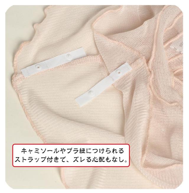 | 【全5色】【UVカット】【シルク】 シルク素材の柔らかな肌触り♪ 簡単にレイヤードスタイルが完成するメッシュメローネックカバー。 首元の冷えやUV対策に! 襟ぐりが大きく開いたトップスに着用すれば、胸元を気にすることなく洋服を楽しめます。 首回りからデコルテにかけて、シルクメッシュでさりげなくカバーします。 キャミソールやブラ紐につけられるストラップ付きで、ズレる心配もなし。 小さく折りたためるのでバッグに入れて持ち運びにも。 プレゼントやギフトにも最適♪ | |