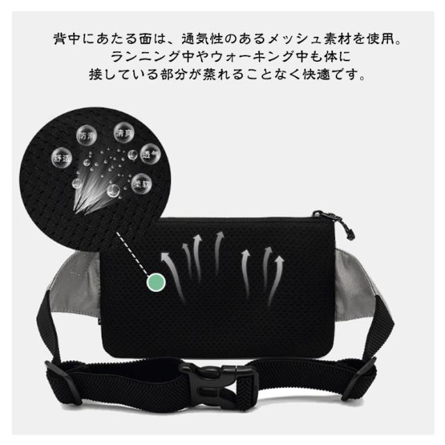 | 超薄型!軽量!防水ウエストポーチ スマホがすっぽりと収まり、小物や、肌身離さず持ち歩きたい貴重品を入れるのに最適なサイズ感です。 ポケット内部は仕切りがあるため、整理して収納できます。 服の中にもナチュラルに隠せる薄型、人間エ学に基づいたフィット設計されています。重量はわずかな135g、携帯便利。 長さも調整できるので身体にフィットして揺れにくいです。 ポーチの表面には防水加工を施しました。 ランニング中の汗や突然の雨などを気にすることなくご使用できます。 背中にあたる面は、通気性のあるメッシュ素材を使用。 ランニング中やウォーキング中も体に接している部分が蒸れることなく快適です。 飽きのこないシンプルなデザインのランニングポーチ。 ユニセックスデザインで女性でも男性でもお使いいただけます。 反射材がついているため、どこから光が当たっても反射します。ご安心して夜間のランニングをお楽しみください。 ランニング、ジョギングやウォーキング、マラソンやジム、アウトドアなどあらゆる用途に対応できます。 また普段使いやファッションアイテムのボディバッグとしても◎ | |