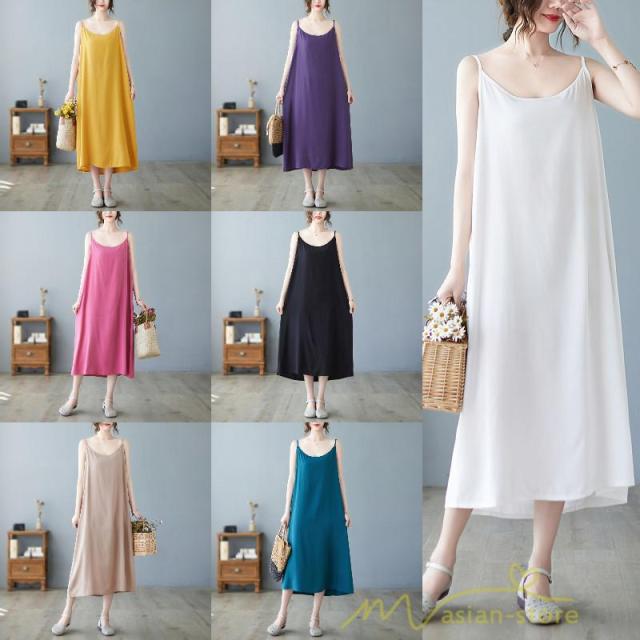 キャミワンピース ワンピース レディース 薄手 大きめ ゆる 体型カバー 無地 インナー ペチコート ロング丈 ミモレ丈 aラインワンピース 夏物 キャミソール