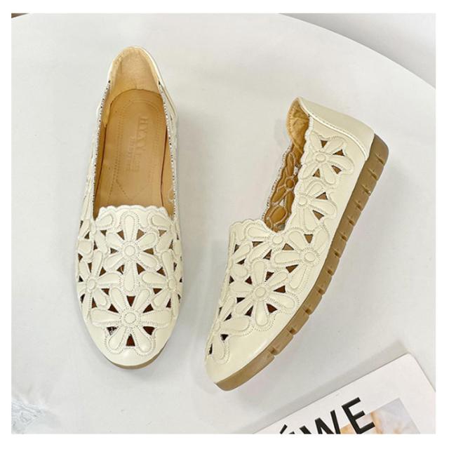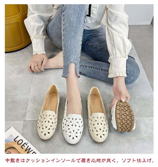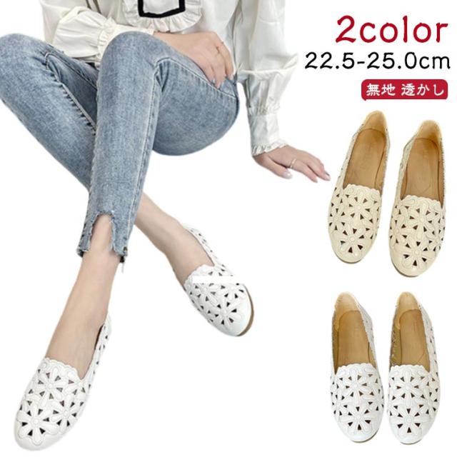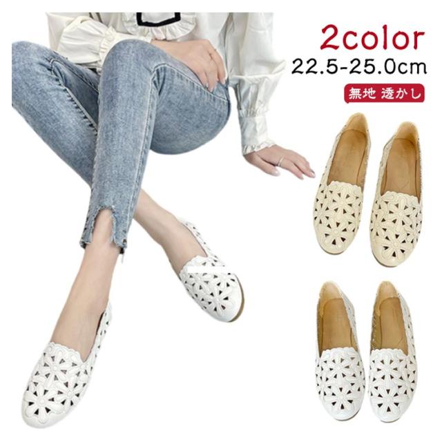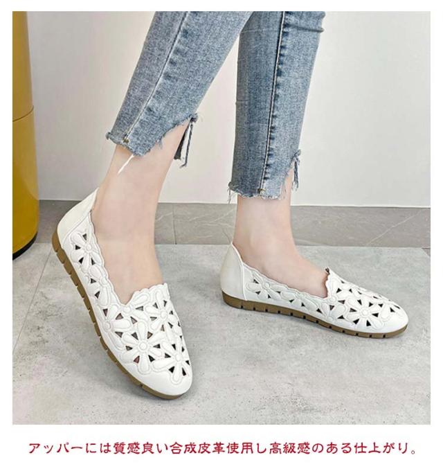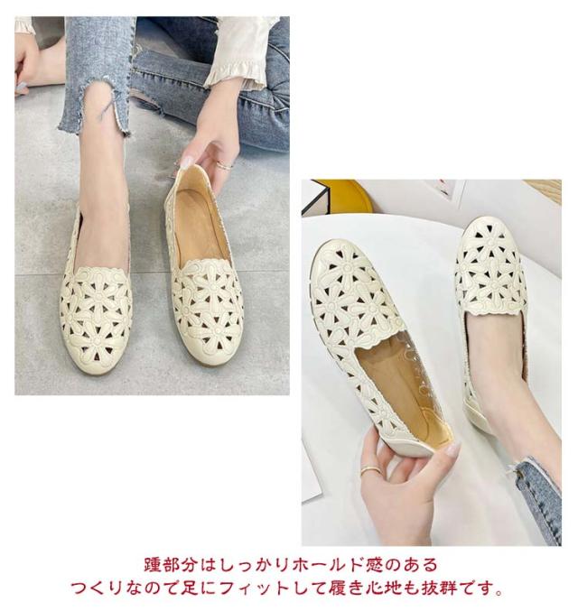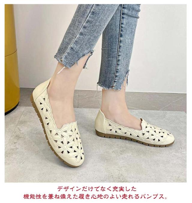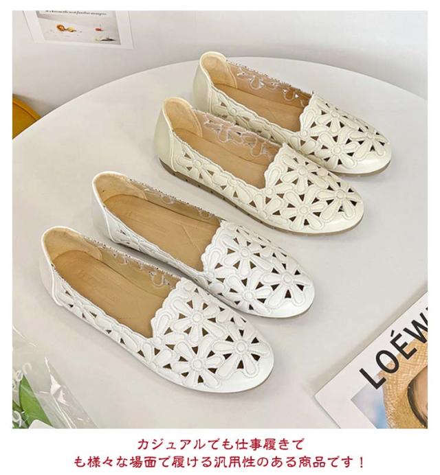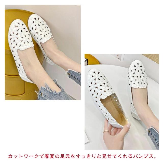 カットワーク パンプス レディース 花柄 透かし彫り フラットパンプス ぺたんこ 痛くない 幅広 走れる 歩きやすい フラット ナースシューズ 通勤 立ち仕事 靴 柔らか 甲高 通気性 かわいい きれいめ 外反母趾 結婚式 母の日 春夏
