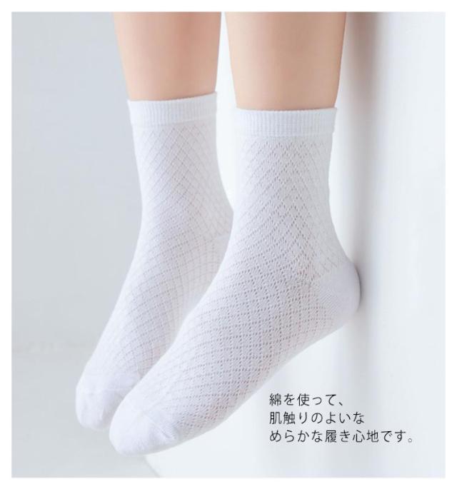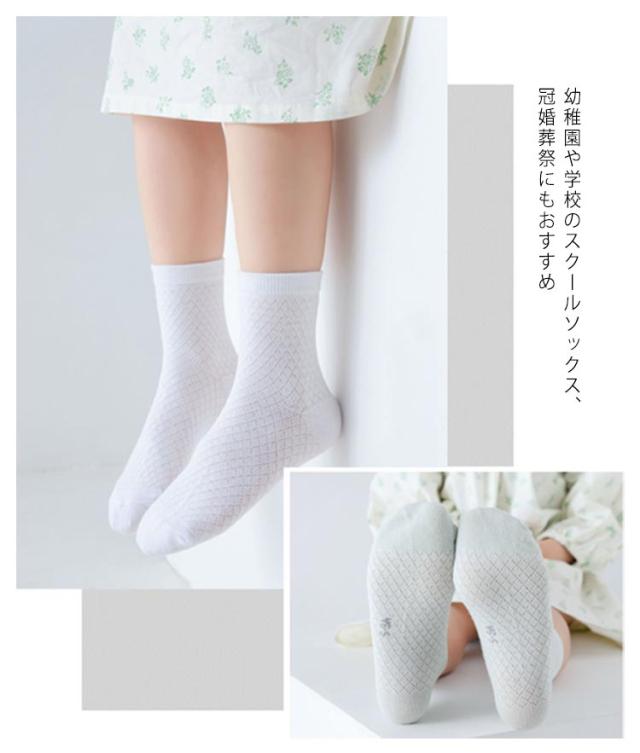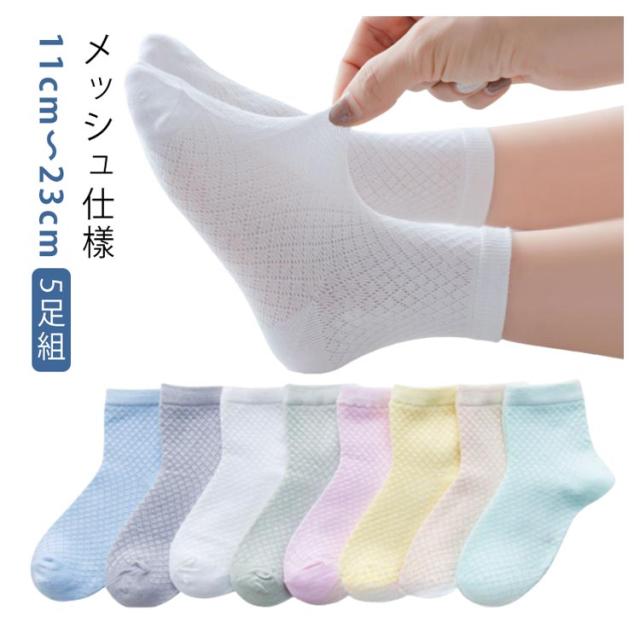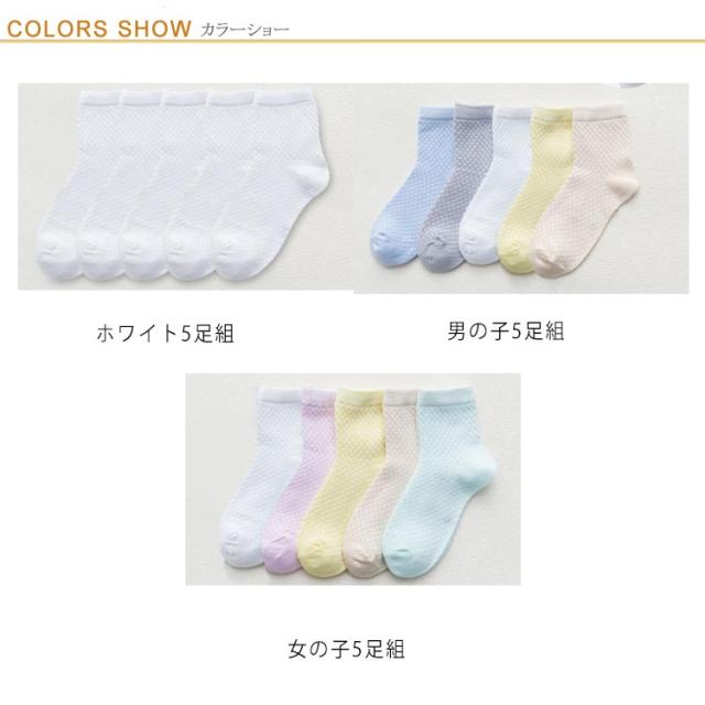 5足セット 子供 靴下 スクールソックス クルー丈 夏用 白 キッズ 男の子 女の子 制服 幼児 小学生 イベント メッシュ ソックス ホワイト 子ども オールシーズン 通気性 コットン ショートソックス 綿 11-23cm 幼稚園 無地