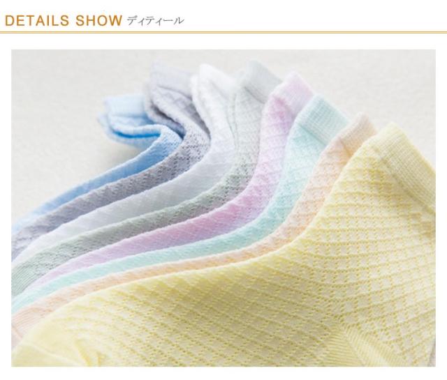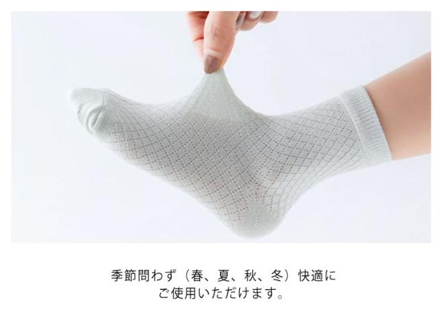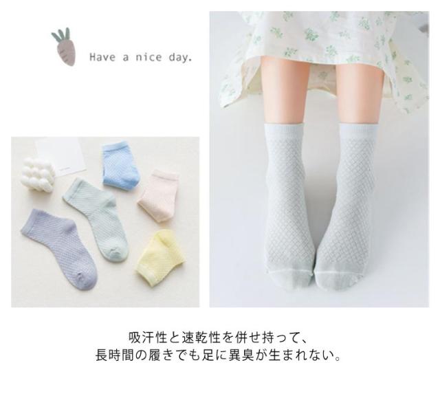 | 【5足組】【メッシュ仕樣】【11cm〜23cm】 甲部分が薄手で通気性のよいメッシュ仕樣で暑い季節も蒸れにくい。 綿を使って、肌触りのよいなめらかな履き心地です。 吸汗性と速乾性を併せ持って、長時間の履きでも足に異臭が生まれない。 幼稚園や学校のスクールソックス、冠婚葬祭にもおすすめ 季節問わず(春、夏、秋、冬)快適にご使用いただけます。 | |