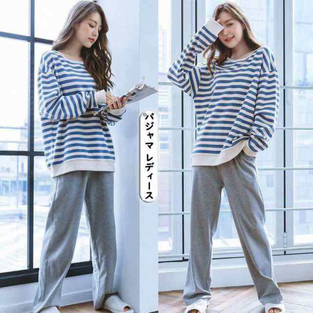 パジャマ 綿100% ルームウェア レディース ルームパンツ スウェット 部屋着 長袖 上下セット キュート 部屋着 パジャマ 春 秋冬 ボーダー柄