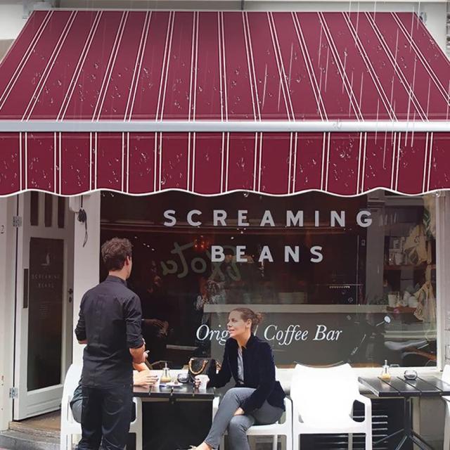 防水性とUVプルーフ:格納式テラスオーニングオーニングは、ポリエステルとPUコーティングされた生地でできており、防水性、UVプルーフ、日光の退色に強いです。