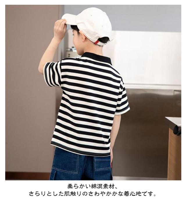 ポロシャツ キッズ 男の子 子供服 半袖 ベビー ボーダー柄 おしゃれ ポロ シャツ かわいい polo 夏 襟付き ボーイズ Tシャツ ジュニア 通園 通学 着心地がいい 綿 トップス 春夏服 カジュアル こども 90 100 110 120 130 140 150cm