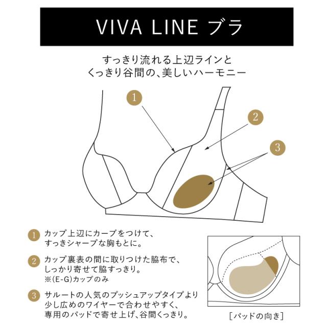 カップ上辺にカーブをつけて、すっきり魅せる胸もとにする『VIVA LINEブラ』