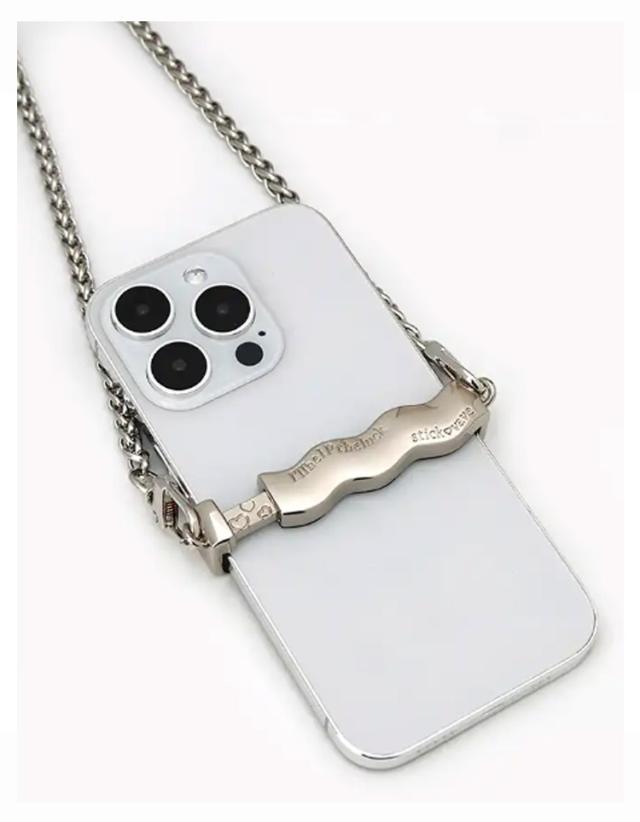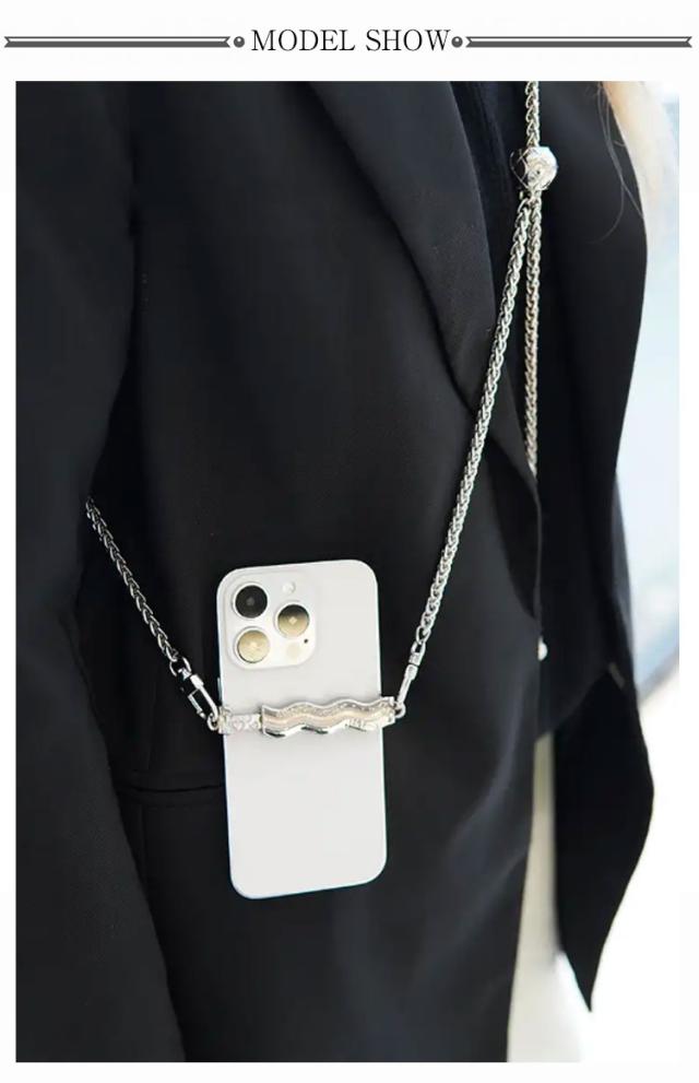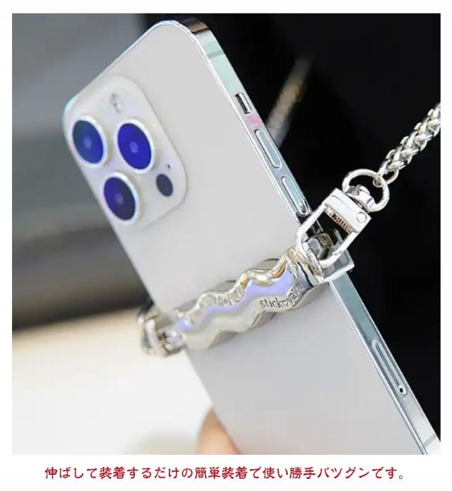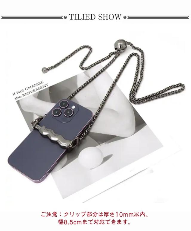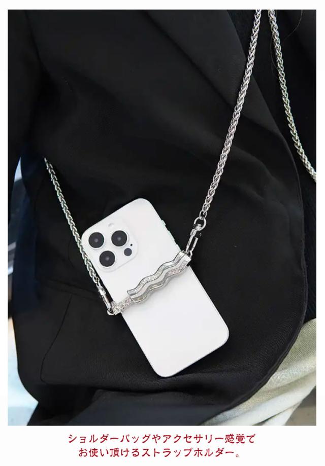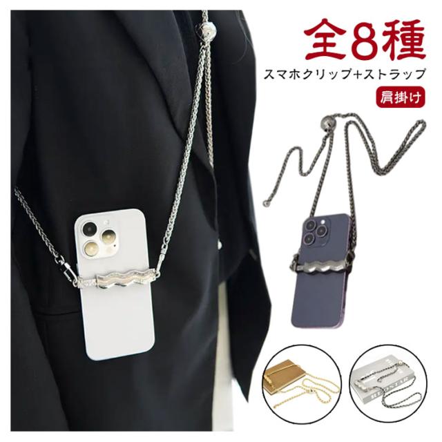 スマホショルダー スマホクリップ ストラップ チェーン レザー 全機種対応 肩掛け おしゃれ 挟むだけ 黒 ゴールド シルバー 高級感 かっこいい お洒落 iPhone15 14 Galaxy Xperia ネックストラップ 斜め掛け スマホストラップ 固定