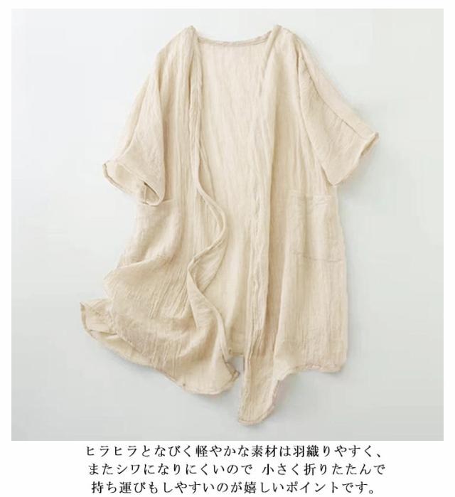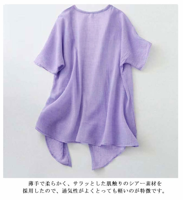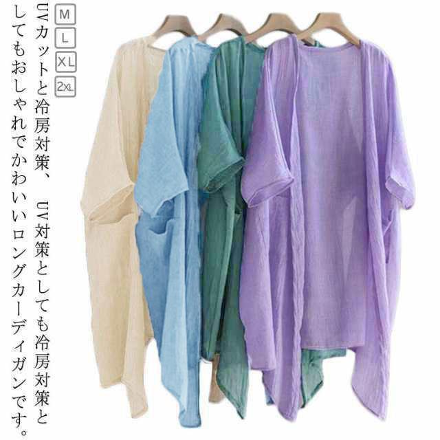 シアーカーディガン 夏用 uv 冷感 薄手 ひんやり 大きめ UVカット レディース ロングカーディガン 半袖カーディガン 薄手カーディガン ロング 羽織 五分袖 二の腕カバー 日焼け対策 透け感 綿麻風 羽織り パープル ブルー ベージュ グリーン