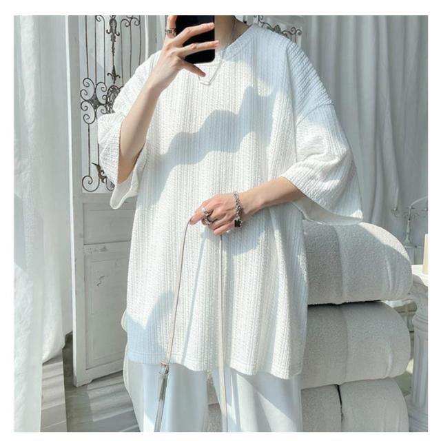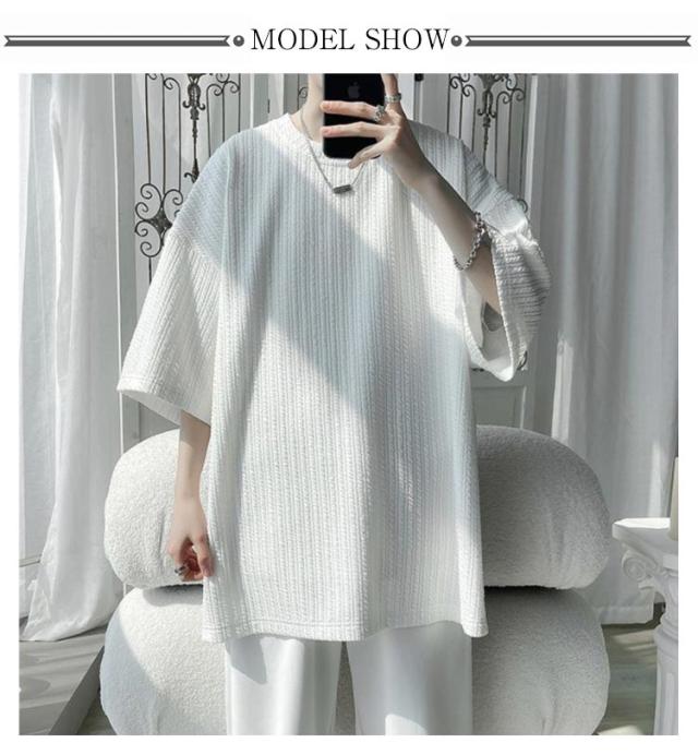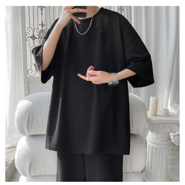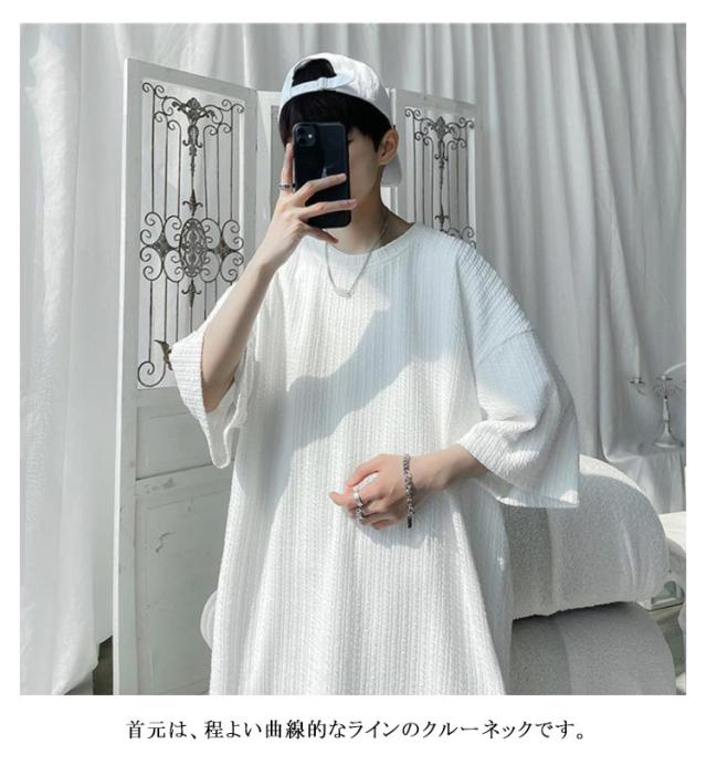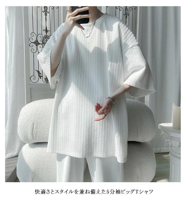5分袖 tシャツ メンズ ビッグTシャツ 無地 トップス 半袖 薄手 ゆったり 韓国 ファッション 夏物 ティーシャツ おしゃれ 五分袖 半袖tシャツ 大人 カジュアル リラックス ダンス 衣装 ストリート 夏服 ビッグシルエット 大きいサイズ