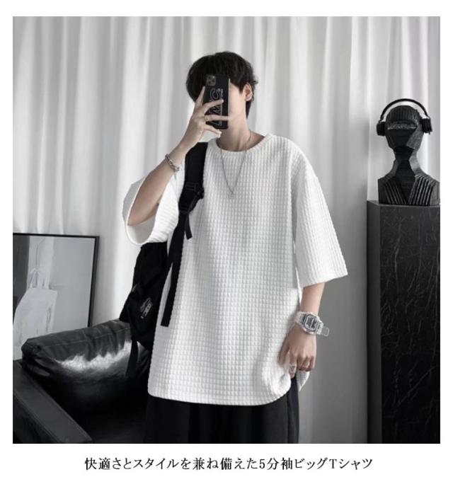tシャツ メンズ 5分袖 ビッグTシャツ 無地 トップス 半袖 薄手 ゆったり 韓国 ファッション 夏物 ティーシャツ おしゃれ 五分袖 半袖tシャツ 大人 カジュアル リラックス ダンス 衣装 ストリート 夏服 ビッグシルエット 大きいサイズ
