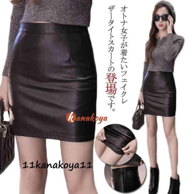 フェイクレザータイトスカート フェイクレザースカート フェイクレザー タイトスカート ペンシルスカート ハイウエスト タイト ミニ 膝上丈 秋冬