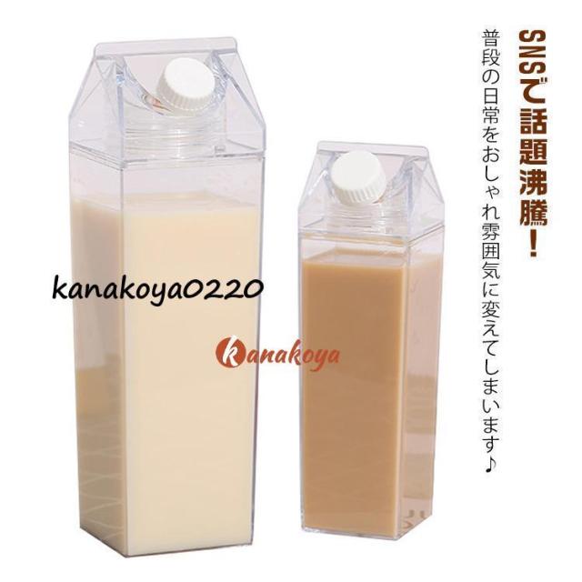 牛乳瓶 牛乳パック ドリンクボトル 2個セッド ウォーターボトル 透明 500ml 牛乳パック 角型 直飲み 1000ml 水筒 スポーツ 旅行 キャ