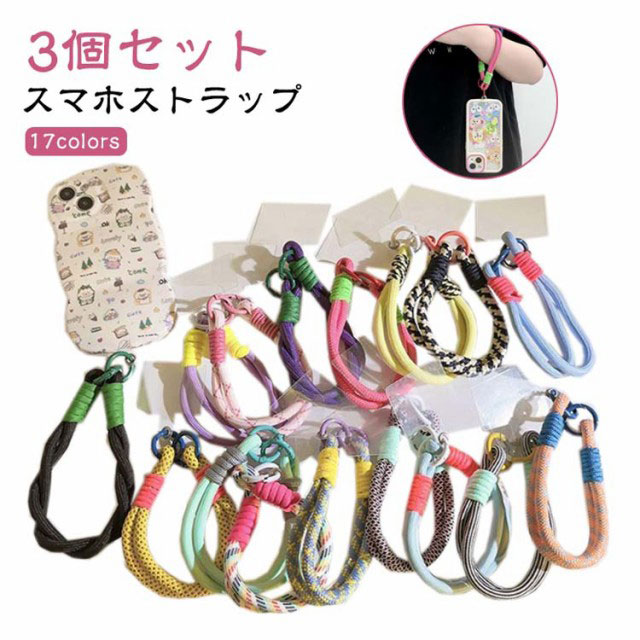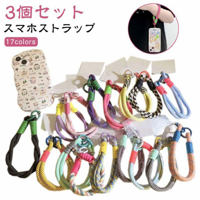 【3個セット】スマホストラップ ハンドストラップ 紛失防止 17色 ストラップホルダー レディース ハンド ストラップ スマホ ストラップ 手首 スマートフォン ストラップ 落下防止 携帯電話ロープ 携帯電話チェーン 編み込み 全機種対応