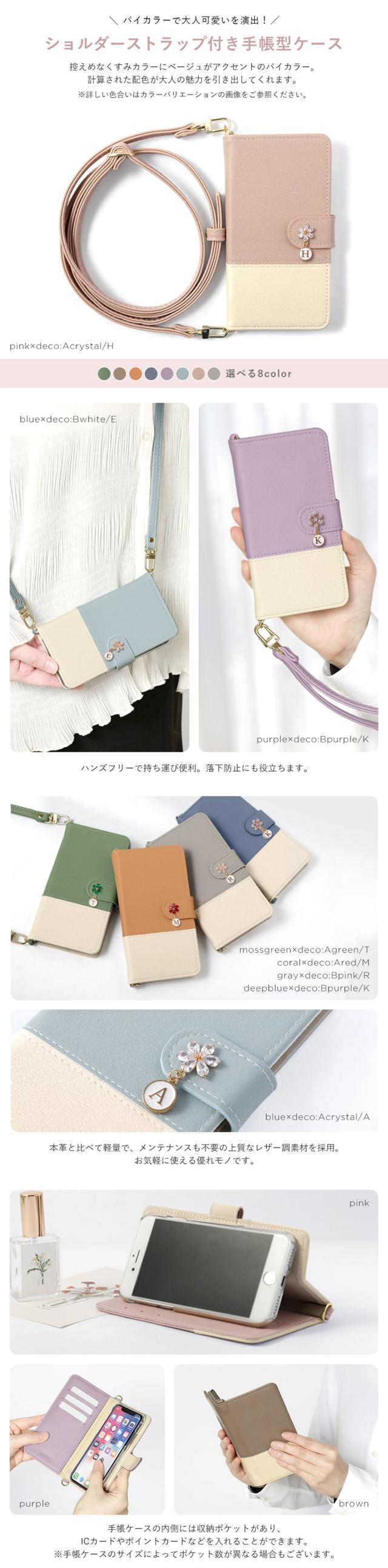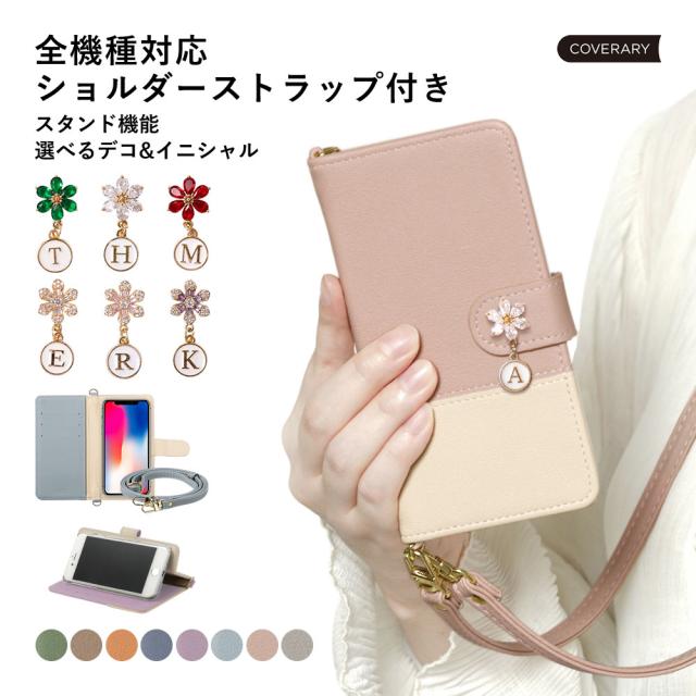 ショルダータイプの手帳型ケース全5色×イニシャルデコ6種