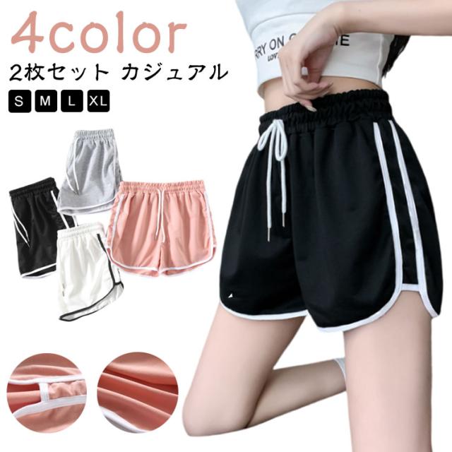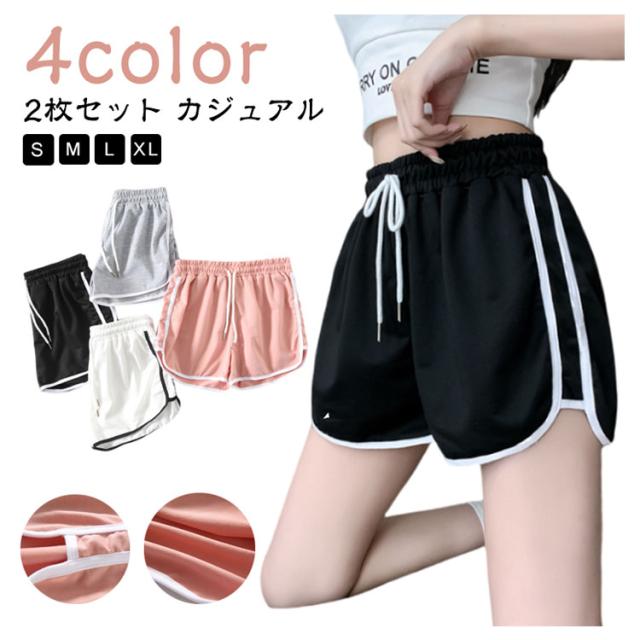 2枚セット ショートパンツ レディース スポーツウェア ジャージ 下 部屋着 スウェット ラインパンツ 短パン カジュアル 夏 スポーツ ランニング フィットネス トレーニング パジャマ ルームウェア サイドライン