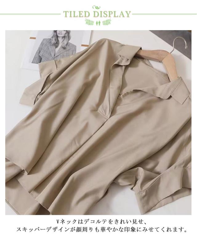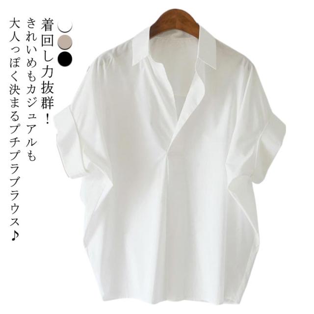 シャツ レディース ドルマン シャツブラウス スキッパー ブラウス 夏 トレンド 二の腕カバー 半袖シャツ 抜け感 Vネック 体型カバー 着痩せ ドルマン オフィス 涼しい シンプル カジュアル おしゃれ