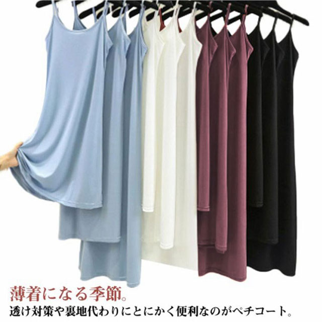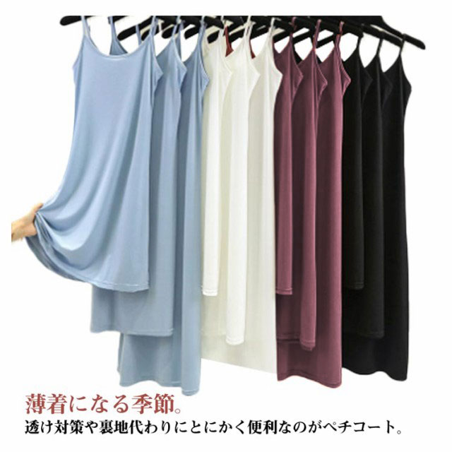 3つの丈×全8色展開 ペチコート レディース インナー キャミワンピース ルームウェア スリップ キャミソール ワンピース インナーワンピース ストレッチ 吸汗速乾 静電気防止 透けない 浴衣インナー 肌着 肌襦袢 代用 春 夏 秋
