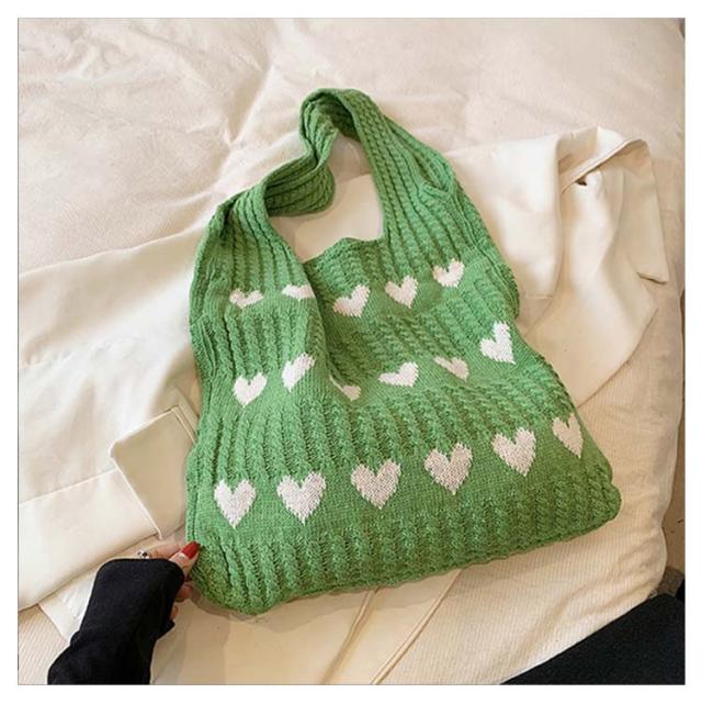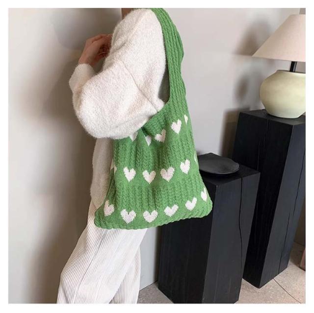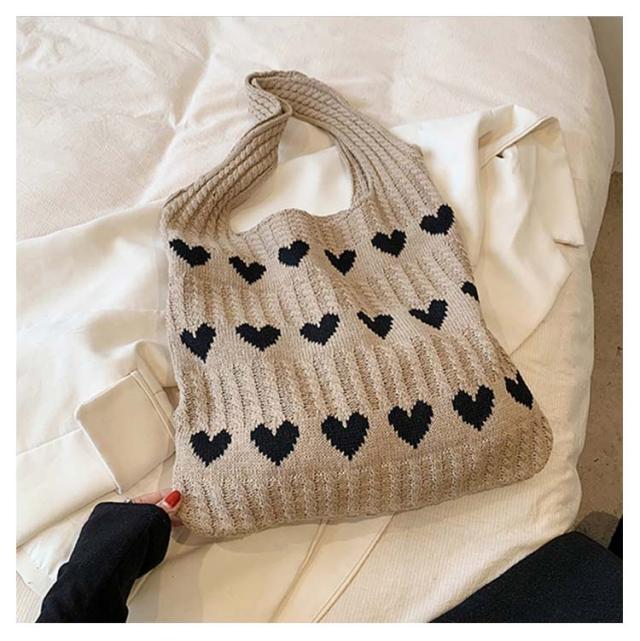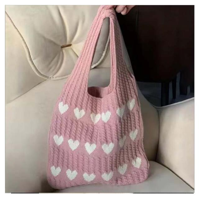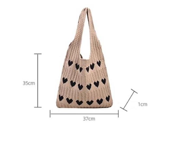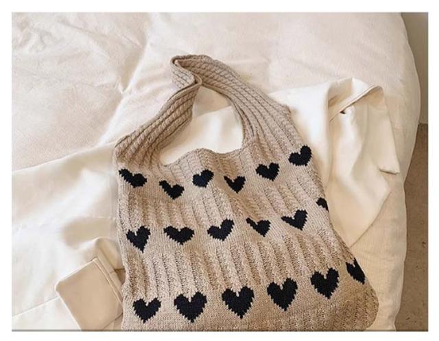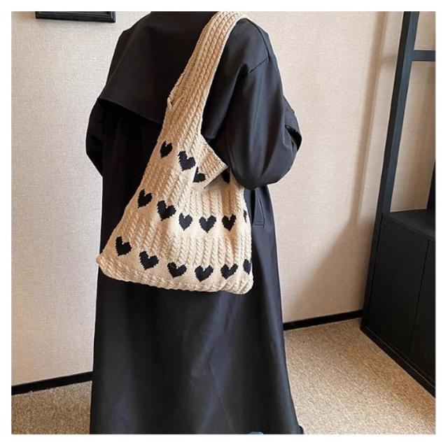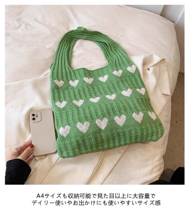 ニットバッグ ハート柄 編みバッグ トートバッグ ケーブル編み ニット トート バッグ 大容量 A4 レディース 大きめ オールシーズン おしゃれ ショルダーバッグ 肩掛け 軽量 エコバッグ カジュアル 可愛い 韓国ファッション マルシェバッグ