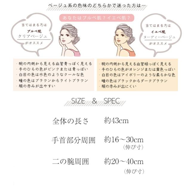 ベージュカラーはお肌をきれいにカバーして、トーンアップする美肌効果の高いアームカバーです。