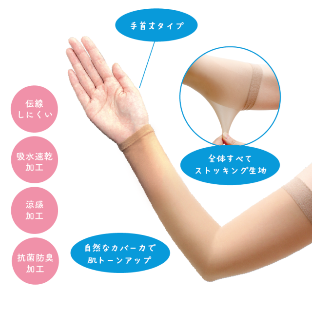 メール便2点まで ストッキング風アームカバー 手首丈 涼感加工 無地 伝線しにくい 自然な肌色カバー 美肌効果 吸水速乾 抗菌防臭 紫外線対策 日焼け止め 夏用 LegStyle レッグスタイル