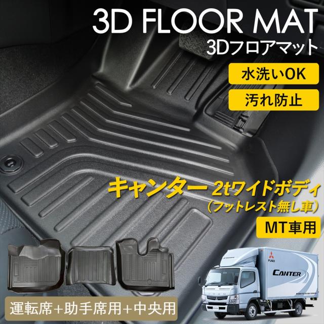 キャンター 8代目 ブルーテック 2t ワイドボディ フットレストなし MT車 3D フロアマット ラグ マット 運転席 中央 助手席 3Dマット ピッタリフィット 汚れ防止 防水 防汚 お手入れ簡単 丸洗い 置くだけ 車種専用設計 立体 カーマット 前席 三菱ふそう