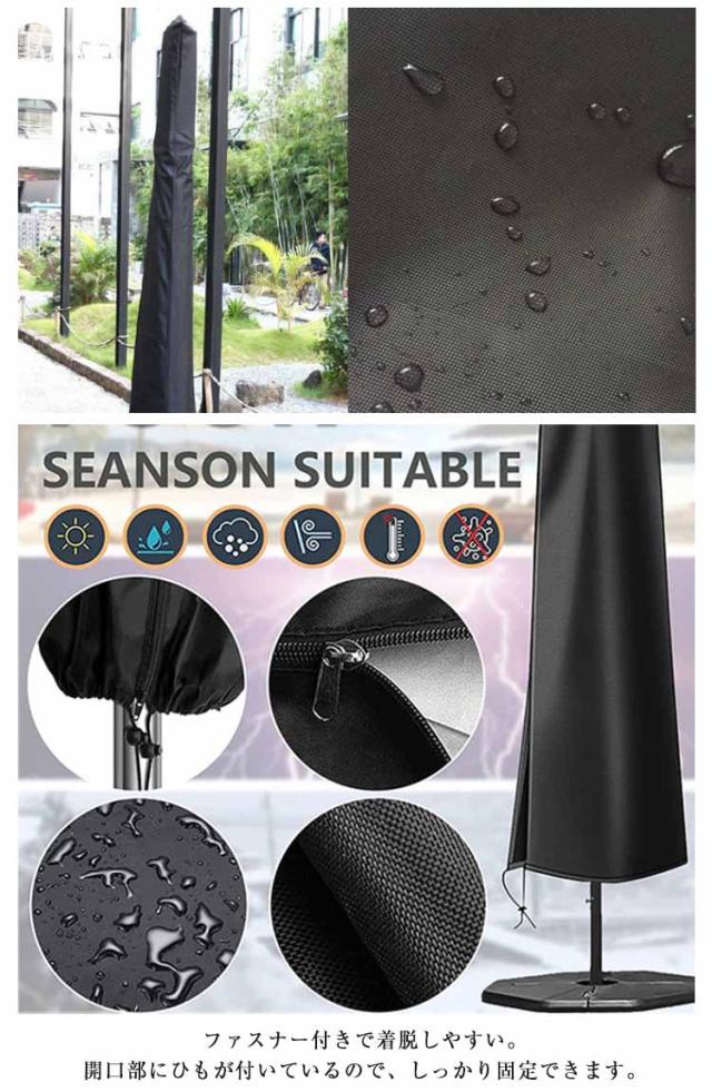 パラソルカバー ビーチパラソルカバー ガーデンパラソル パラソル用カバー 屋外 210Dオクスフォード ファスナー付き 開口部に紐付き 収納袋付き 簡単 取り付け 保護カバー ホコリ 汚れ防止 防水 防塵 防風 UVカット 紫外線防止 折りたたみ アウトドア 屋外 持ち運び