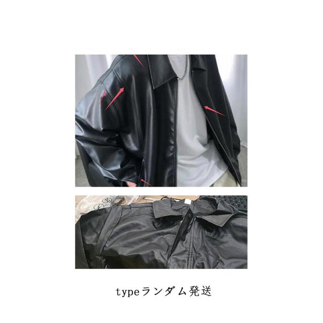 ブルゾン メンズ レザージャケット 合皮 フェイクレザー PUレザー ジャケット アウター 革ジャン ライトアウター ステンカラー コート ショート丈 羽織 長袖 ライダースジャケット ゆったり オーバーサイズ カジュアル ストリート モード系 春 秋 冬 秋服 バイクジャケット