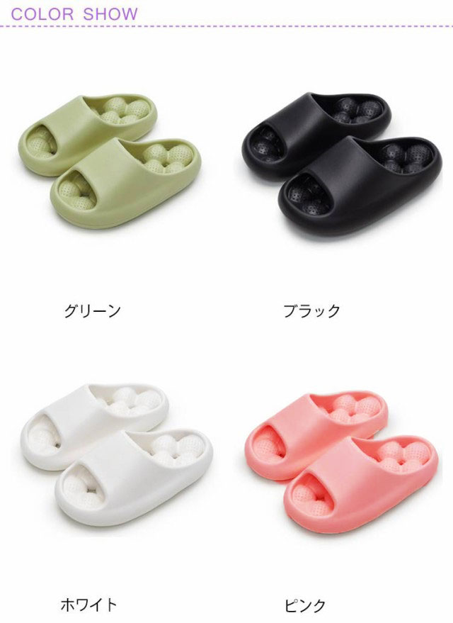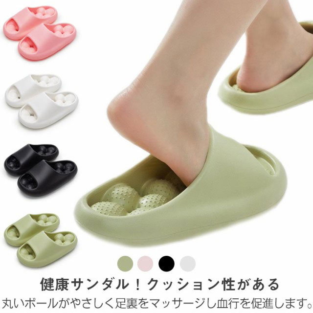| 健康サンダル!クッション性がある丸いボールがやさしく足裏をマッサージし血行を促進します。 ソールに穴が空いてるので水はけがよく乾きやすいです。 適度に柔らかいPVC素材のため、長時間の着用も快適です。 大き目の丸いボールが優しくじんわりと足裏の反射区を刺激し内臓機能、血流を改善します。 厚底があるので、長時間立っても疲労感なし、さらにクッションもすぐれたスリッパです。また弾力性があり履き心地が良いです。 滑り止め効果!靴底の裏面が細かな凹凸になっているためすべりにくい仕様となっています。 通気性が良いため排水と防臭効果に優れています。 底面は滑り止め加工を施しているため、 ベランダ・トイレ・浴室などの濡れた地面でも滑ることなく使用できます。 足ツボサンダル、シャワーサンダル、ベランダサンダル、ビーチサンダル、トイレ用など様々なシーンでお使いいただけます。 | |