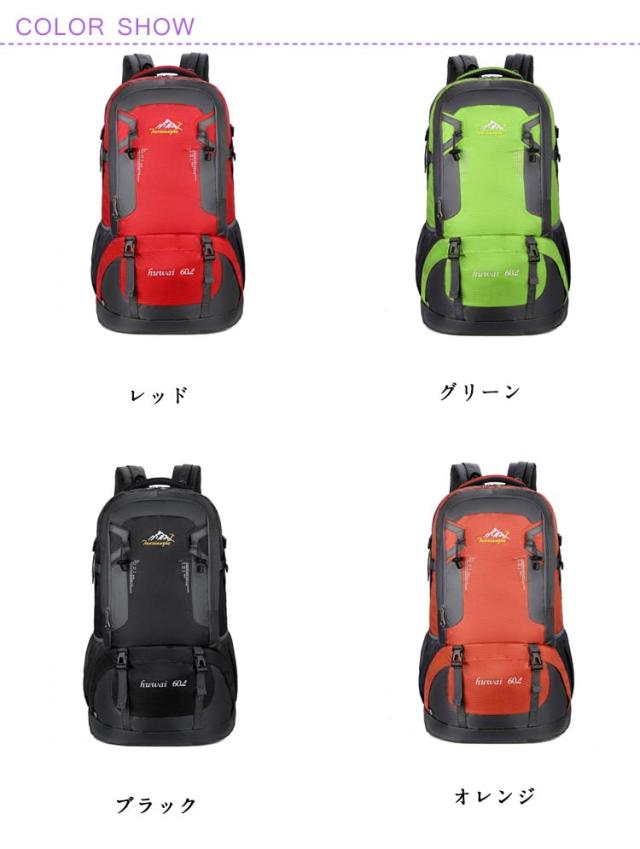 | アウトドアを楽しめるリュックサックです。 収納力抜群、PC、Pad、A4サイズの書類や着替え、サングラス、帽子など必要なアイテムを、まとめて収納。 肩のベルト部分には厚手のクッション材が使われているので、耐荷重性も抜群です。 60Lの大容量があるので、様々な物の収納に便利です。 引き裂き防止と撥水のあるナイロン素材を採用するので、雨でも安心使用できます。 旅行や出張、アウトドアや災害などさまざまな用途に使えます。 | |