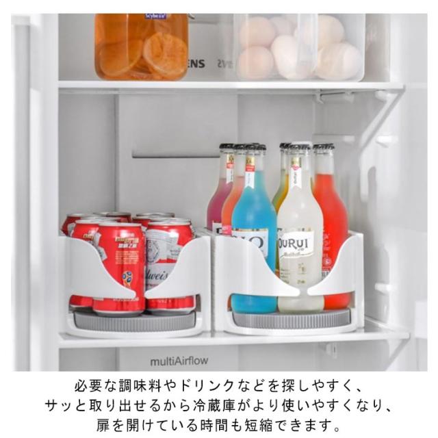 回転式収納ラック 冷蔵庫収納 冷蔵庫トレー 冷蔵庫ケース 省スペース 調味料ラック 冷蔵庫 ケース ボックス トレー 収納 整理用品 整理 整頓 収納トレー 回転 ストッカー 冷蔵室 缶ストッカー クリア 回転 便利 化粧品&小物収納