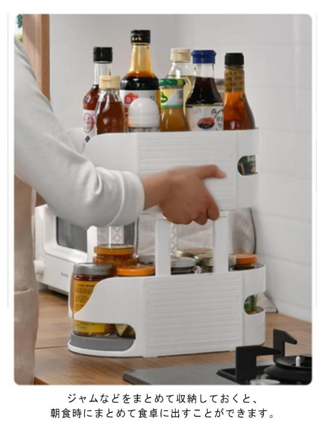 | 冷蔵庫の奥の物を取り出しやすくする回転式収納ラックです。 360度回転するので、くるっとまわして奥の物も簡単に手前に持ってくることができます。 必要な調味料やドリンクなどを探しやすく、サッと取り出せるから冷蔵庫がより使いやすくなり、扉を開けている時間も短縮できます。 深めのフチになっているので、くるくると回した時に調味料などが倒れにくいです。 ジャムなどをまとめて収納しておくと、朝食時にまとめて食卓に出すことができます。 360度回転するからキッチンスペースや洗面所の奥まった場所に収納でき、スペースを有効活用することができます。 | |