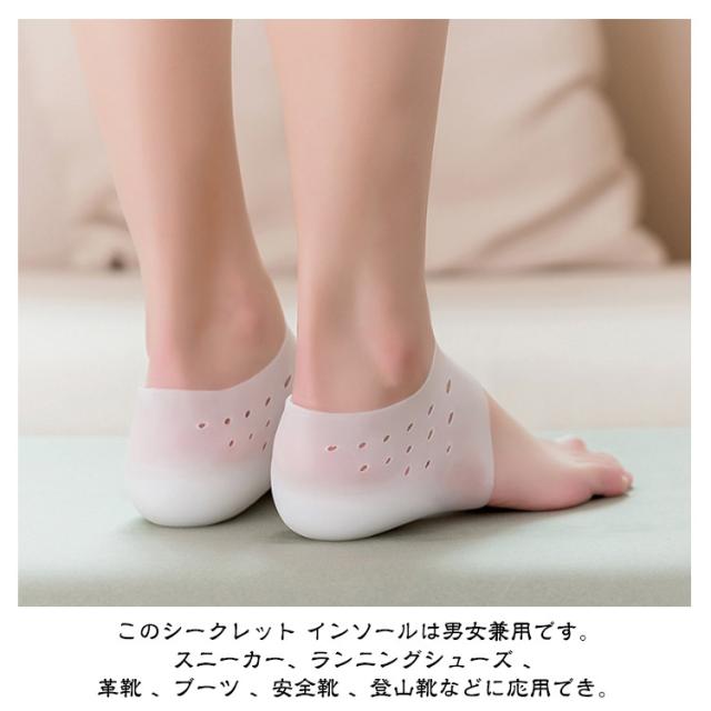 シークレットインソール 靴下 シリコン ハーフ かかと 3cm 身長アップ 高通気性 衝撃吸収 靴下で隠せる どんな靴にも合う 中敷 メンズ レディース 男女兼用 かかと クッション シークレットソックス インソール アーチサポート 土踏まず ビジネス 送料無料