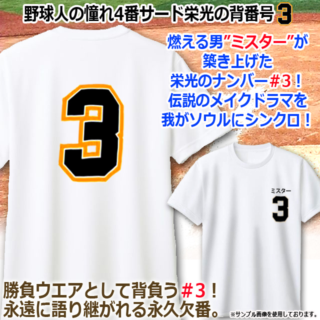 栄光の背番号3 Tシャツ ミスター 野球 永久欠番 4番サード メイクドラマ 燃える男 スタジアム ヒーロー 永久に不滅 速乾 ドライ プロ野球