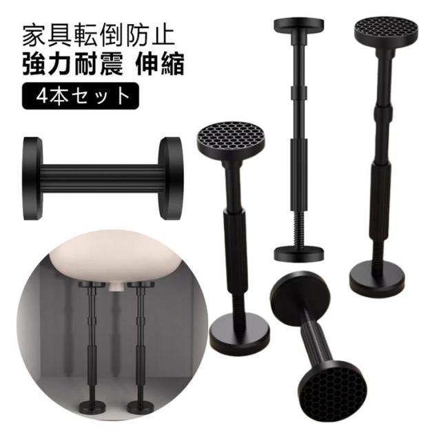 【4本セット】転倒防止 突っ張り棒 転倒防止棒 転倒防止器具 転倒防止用突っ張り棒 耐震ポール 強力耐震 伸縮 防災グッズ 家具転倒防止伸縮棒 地震 耐震 地震対策 家具 突っ張り棒 食器棚 つっぱり棒 タンス 固定 耐震バー 天井 棚 本棚 耐震グッズ 冷蔵庫