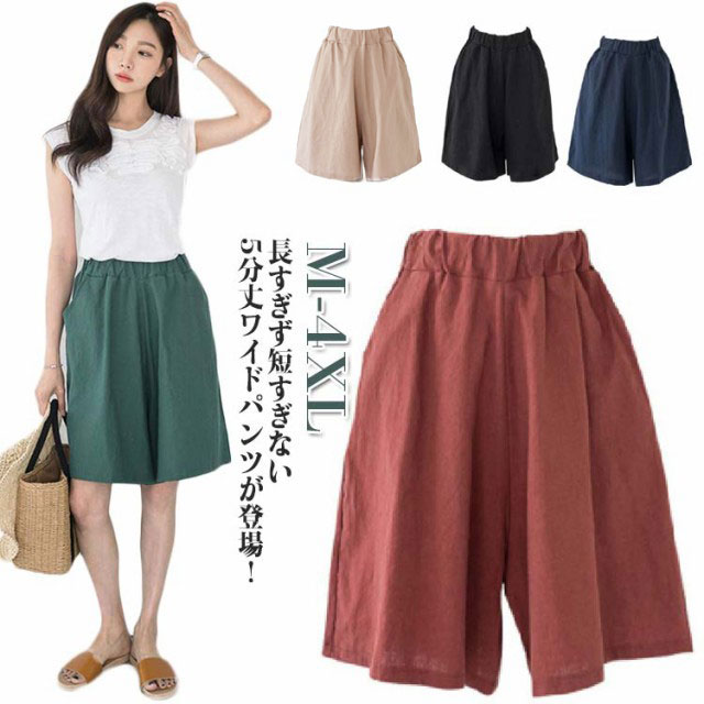 5分丈 パンツ ハーフパンツ レディース ワイドパンツ チノパン 綿 大きいサイズ ゆったり 体型カバー ボトムス フレア 五分丈 シンプル 無地 コットン 春夏秋 半ズボン ショーパン 膝丈 ショートパンツ カーゴパンツ ひざ丈 ウエストゴム 短パン カジュアル 部屋着