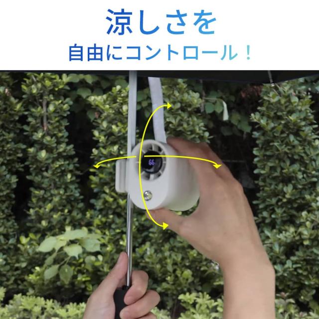 日傘に装着可能なクリップ式をはじめ、首にかけて使えるネックストラップ、腰のベルトに取り付け可能なベルト対応、机に置ける卓上使用、持ち歩きできる手持ちスタイル、腰に掛けて使える腰掛け、さらには壁に掛けての壁掛け使用まで、合計7通りの使い方に対応。屋内外問わず、通勤・通学・お祭り・アウトドアなどあらゆるシーンで、あなたにピッタリのスタイルで快適な風をお届けします。