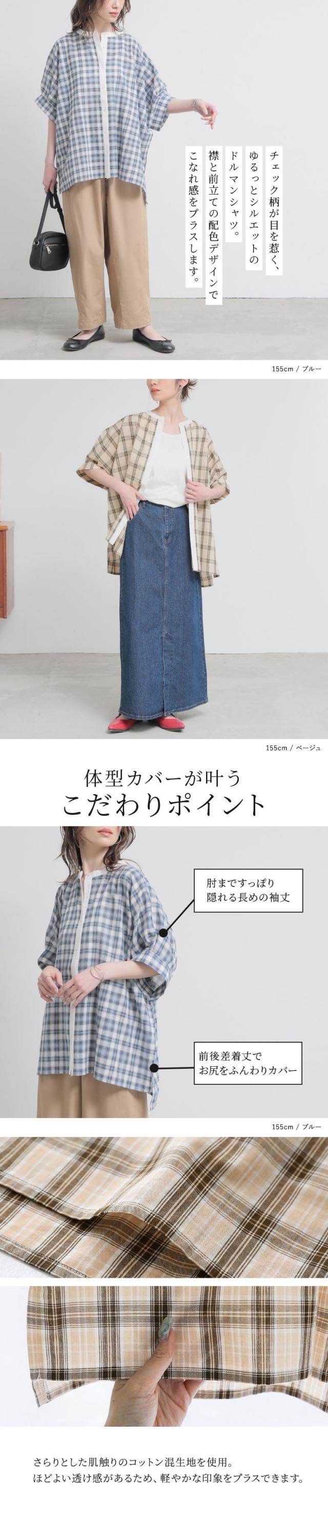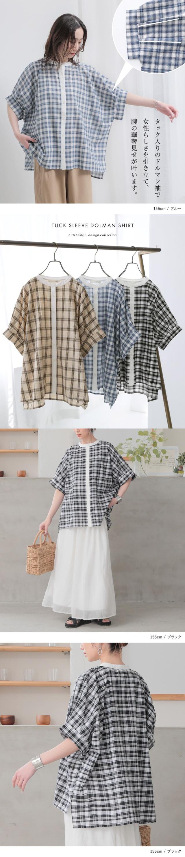 シャツ レディース トップス 半袖 ブラウス 羽織 ドルマンスリーブ チェック柄 透け感 薄手 ゆったり 二の腕カバー 春 夏 【TP】 ボタンシャツ 前開きシャツ 柄シャツ バンドカラー スタンドカラー n'OrLABEL ノア—ルレーベル 大人女子 大人可愛い お洒落可愛い 大人カジュアル ベーシック ニュアンス ラフ オフィスカジュアル 上品 きれいめ ナチュラル 五分袖 ミディ丈 ミドル丈 チュニック丈 タック 総柄 配色 綿100% コットン100% 綿混 コットン混 レイヤード 重ね着 おうちで洗える カジュアル シンプル モード キレカジ フェミニン ゆる 楽ちん お尻が隠れる Sサイズ Mサイズ Lサイズ LLサイズ 3Lサイズ XLサイズ フリーサイズ ぽっちゃり 体型カバー 大きいサイズ プラスサイズ 10代 20代 30代 40代 50代 60代 女子会 オフィス 通勤 通学 お買い物 お出掛け 旅行 リゾート レジャー おしゃれ お洒落 トレンド 流行 osharewalker オシャレウォーカー おしゃれうぉーかー ベージュ ブルー 青 ブラック 黒[ID]12tn0r4[n'OrLABEL袖タックドルマンチェックシャツ]