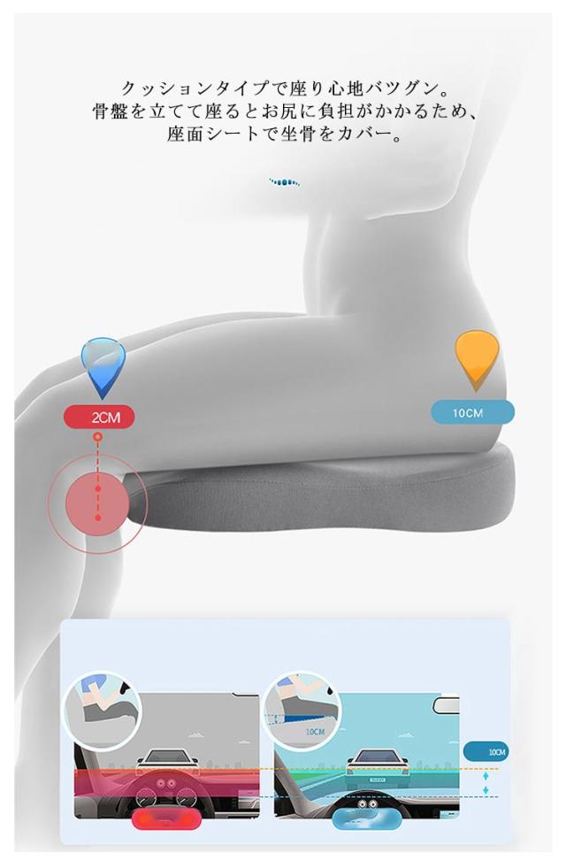 カーシート クッション 低反発 美尻パッド 滑り止め 運転席用 プレミアムカーシート ウェッジクッション シートの高さ調整 車 運転 腰 姿勢 腰痛 腰痛対策 座布団 体圧分散 蒸れない 長距離ドライブ 疲れ軽減 車 クッション