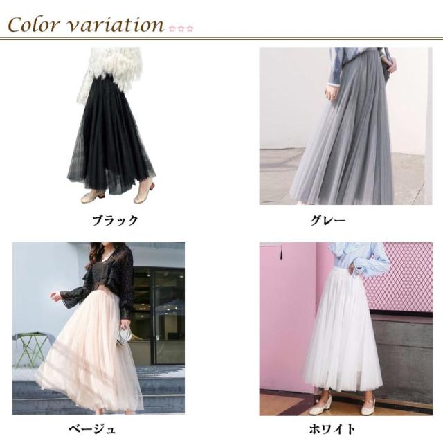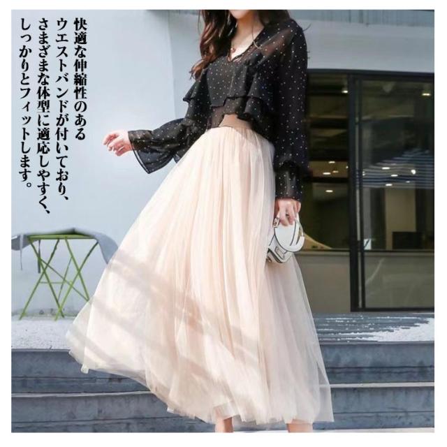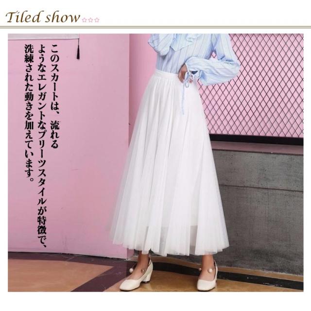 チュールスカート レディース スカート 85cm チュール フレア ロン レディース ロング フレアスカート プリーツスカート ウエストゴム ミモレ丈 プリーツ フレアスカート 体型カバー ウェストゴム きれいめ