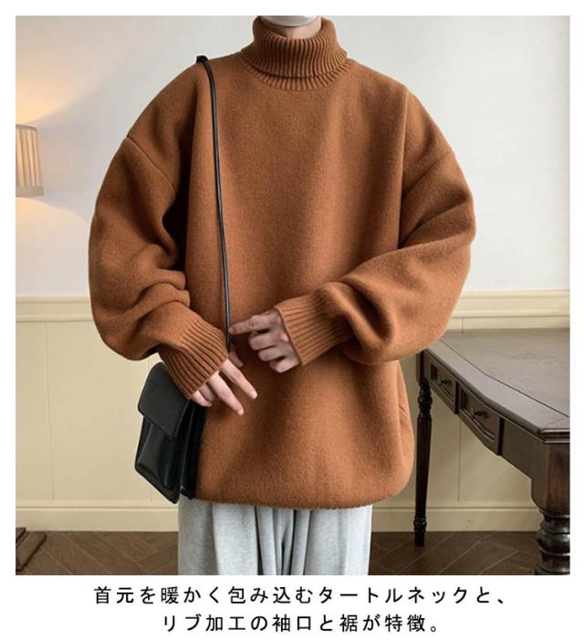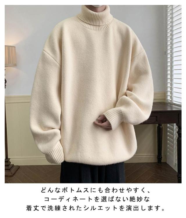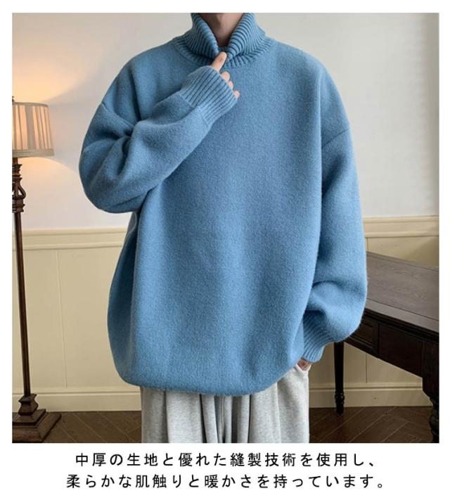 ニットセーター メンズ タートルネック 長袖 トップス ニット ゆったり 大きいサイズ シンプル オシャレ 秋冬服 厚手 防寒 暖かい 無地 人気 柔らかい肌触り かっこいい カジュアル キレイめ