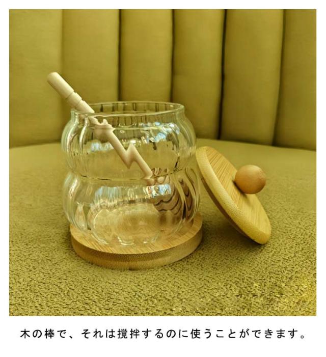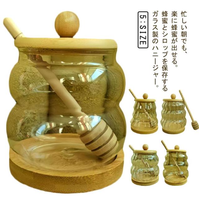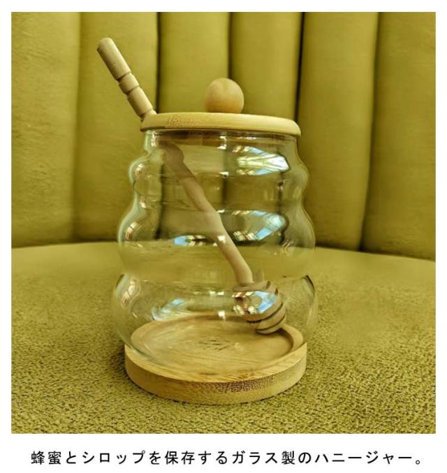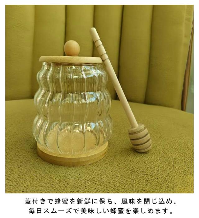 ハニーポット ガラスハニージャー 透明 耐熱ガラス 蜂蜜ポット ガラスハニージャー 蓋付き ハニーディスペンサー はちみつサーバー 家庭用 攪拌棒付き 蜂蜜ボトル 蜂蜜入れ かわいい ダイニングテーブル 保存缶 保存容器