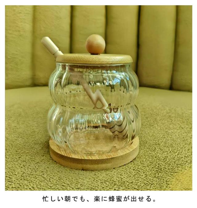 | 忙しい朝でも、楽に蜂蜜が出せる。 蜂蜜とシロップを保存するガラス製のハニージャー。 蓋付きで蜂蜜を新鮮に保ち、風味を閉じ込め、毎日スムーズで美味しい蜂蜜を楽しめます。 木の棒で、それは撹拌するのに使うことができます。 | |