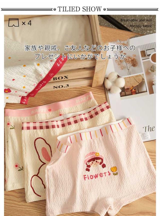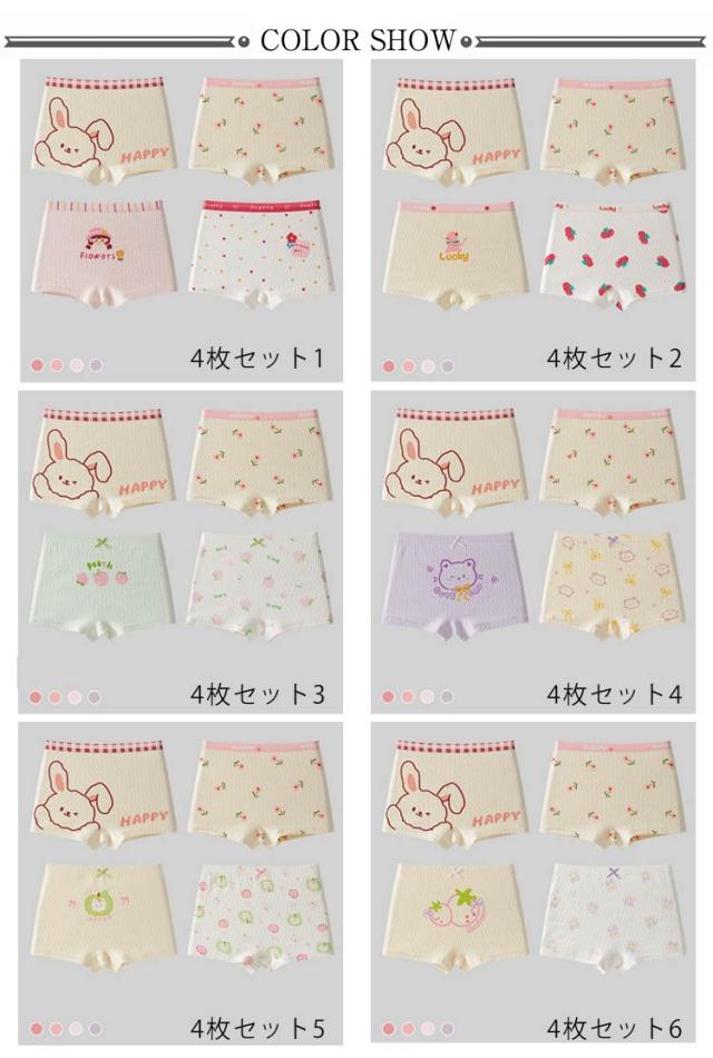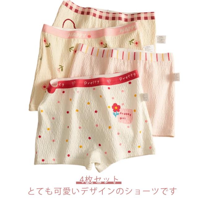 4枚セット キッズショーツ ボクサーショーツ 女の子 綿 子供 女子 下着 パンツ 保育園 幼稚園 小学生 抗菌 通気性 吸湿性 コットンショーツ 女児 子供 ガールズ