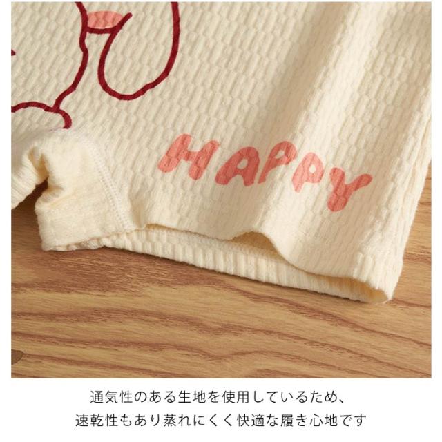 | とても可愛いデザインのショーツです。 柔らかい綿生地を使用しており、優しい肌触りでデリケートなお子様の肌を守ります。 お尻まですっぽり覆うデザインになっているためショーツがずれにくく、お腹周りも冷えから守ります。 ウエストのゴムも伸縮性がある柔らかいゴムを使用しており、程よく体にフィットします♪ 通気性のある生地を使用しているため、速乾性もあり蒸れにくく快適な履き心地です。 家族や親戚、ご友人などのお子様へのプレゼントにいかがでしょうか。 | |