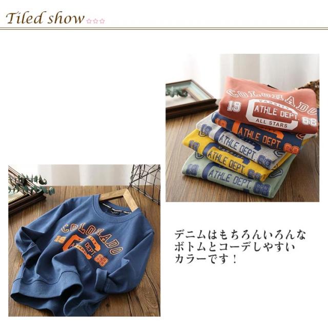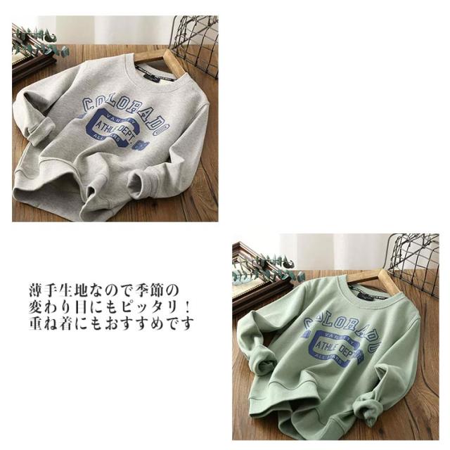 キッズ トレーナー 薄手 子供 スウェット 長袖 Tシャツ 子供服 カットソー 男の子 女の子 トップス ジュニア 英字ロゴ 春 秋 ロンT プリント カジュアル シンプル 着回し 小学生 お出掛け