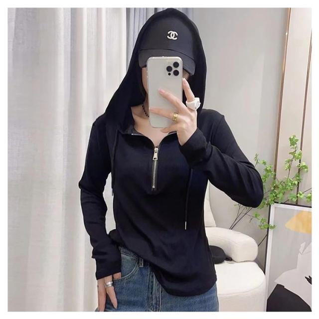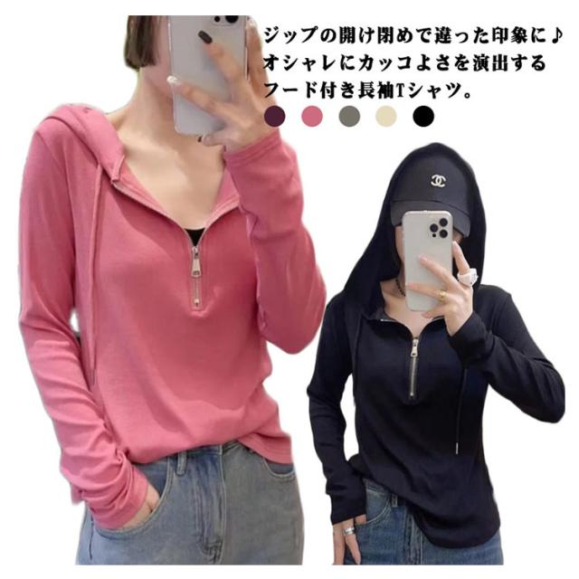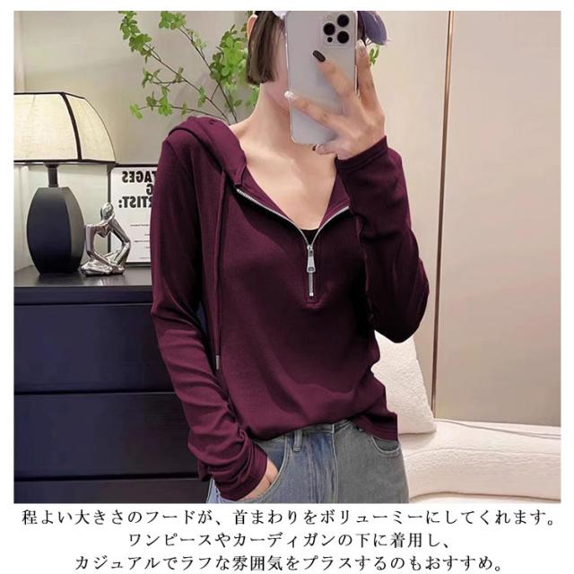 パーカー ロンT ハーフジップ フード付きTシャツ 長袖 フード付きTシャツ レディース カットソー ショート丈 フード付き 長袖tシャツ プルオーバー プルオーバー ロングtシャツ ロンティー カジュアル 体型カバー 無地