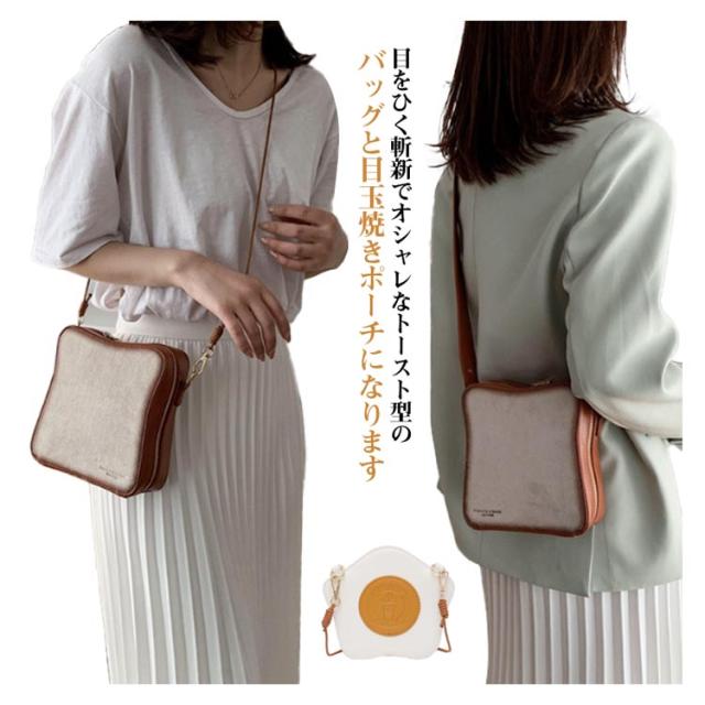鞄 目玉焼きポーチ付き トーストバッグ おもしろグッズ ショルダーバッグ デザインバッグ デザインポーチ スクエアバッグ おもしろグッズ クロスボディバッグ 食パン 小物 モード系 ストリート 原宿系