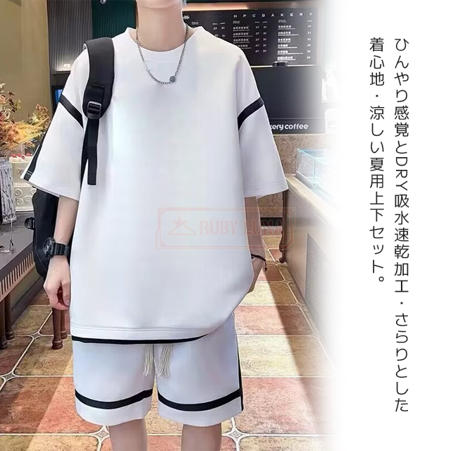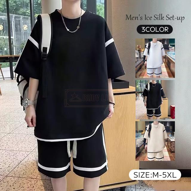 最安挑戦 冬新作 送料無料 新作 メンズ セットアップ 涼感 アイスシルク セットアップ 速乾 吸汗 夏用 ひんやり 接触冷感 上下セット 無地 半袖Tシャツ+ロングパンツ 2点セット ゆったり 薄手 涼しい 通気性 柔らかい 運動着