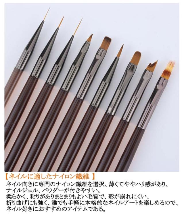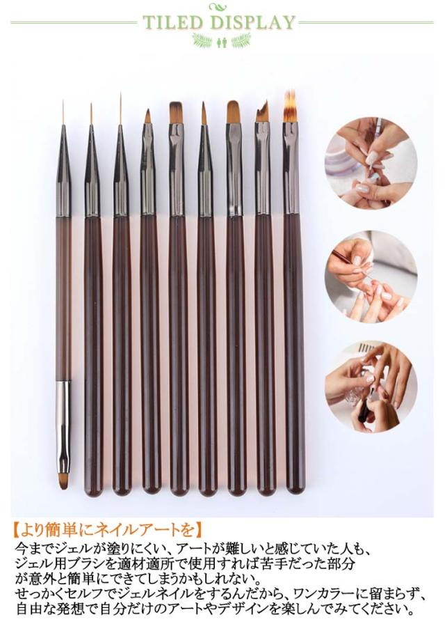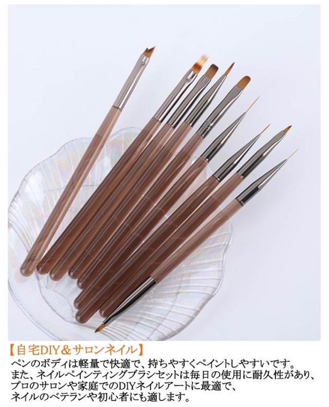 筆 優れ 耐熱 ジェルネイルブラシ オーバル ネイルケアグッズ 9種入り ネイル アート アンギュラー ジェルネイルブラシ フラット ブラシ ライナー ペイント コーム シンプル 使いやすい